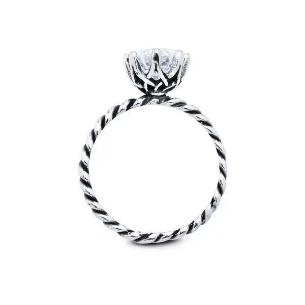 • Anel Prata Envelhecido Com Zircônia