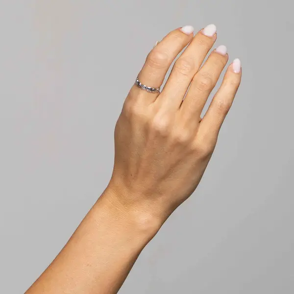 Anel Prata Envelhecido Trabalhado Flores