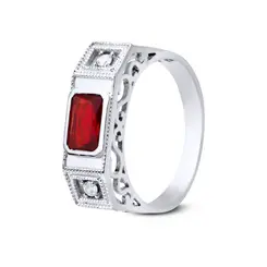Anel Prata Masculino Pedra De Zircônia Quadrada
