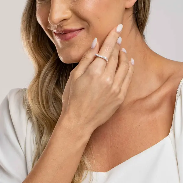 Anel Prata Meia Aliança Quadrada com Zircônias