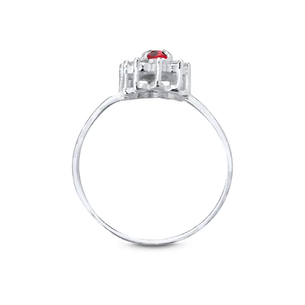 Anel Prata Pedra Zircônia Branca E No Meio Vermelha