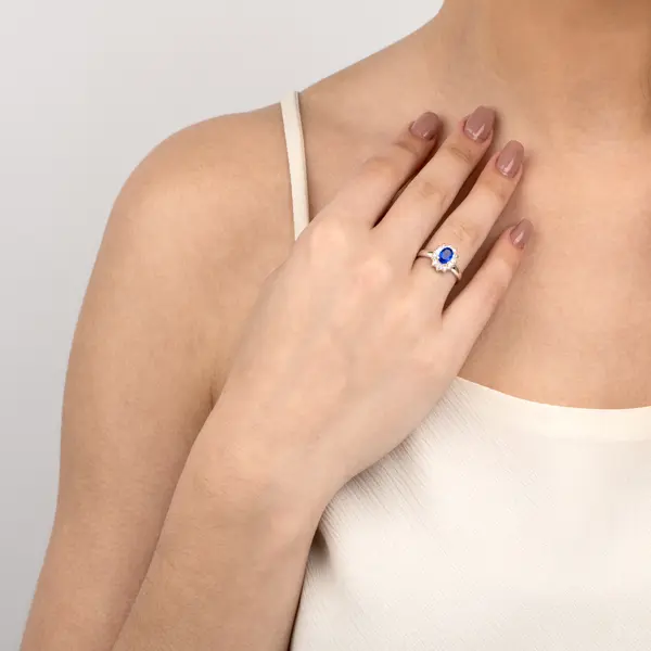 Anel Prata Princesa Kate Azul