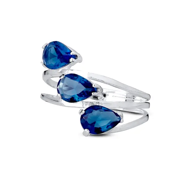 Anel Prata Três Gotas De Zircônias Azul Escuro