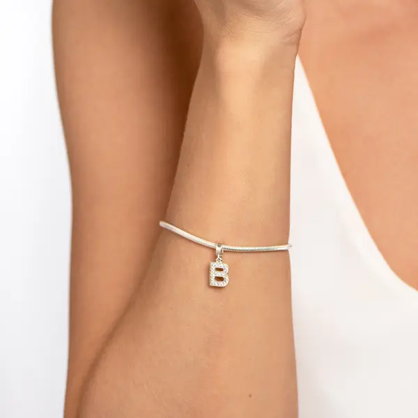 Berloque Prata Letra Zircônia Letra B