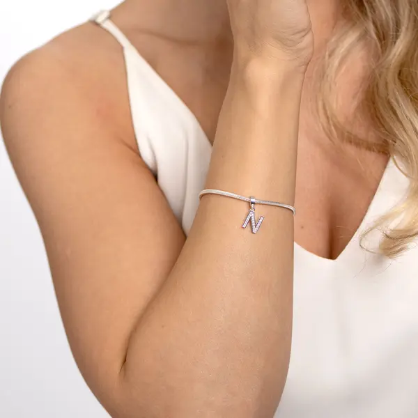 Berloque Prata Letra Zircônia Letra N