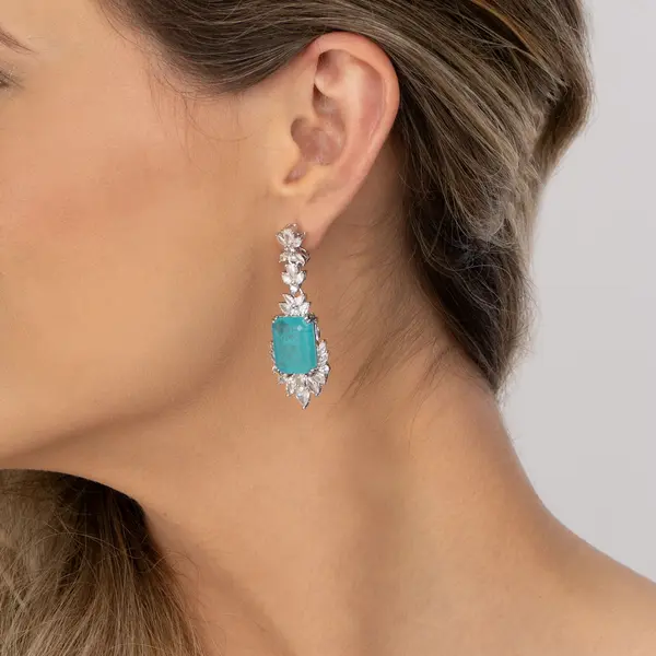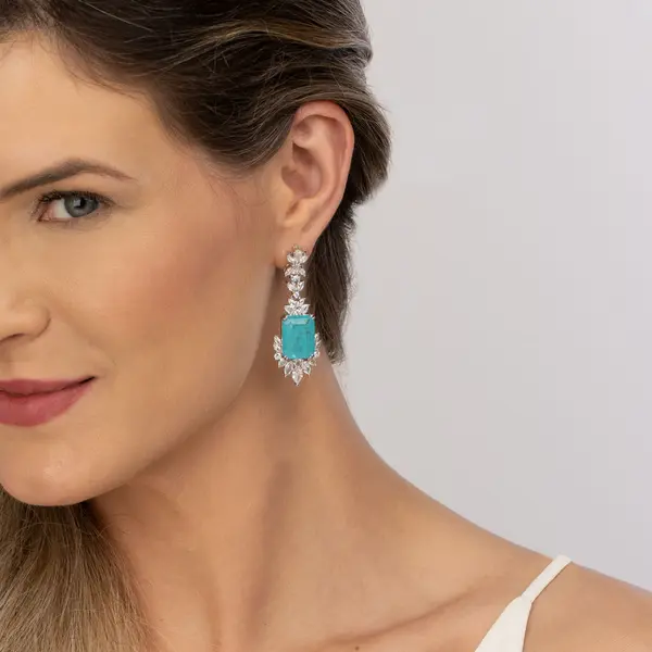 Brinco Banho De Rodio Cristal Fusion Com Zircônias Brancas