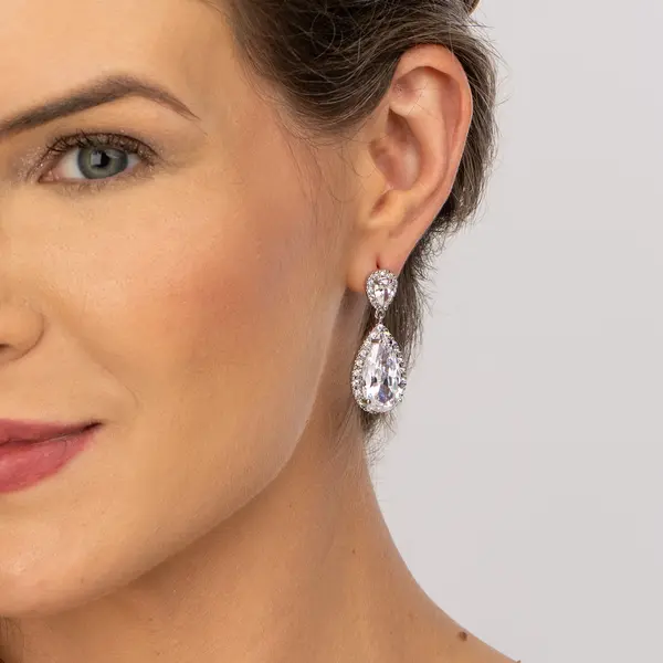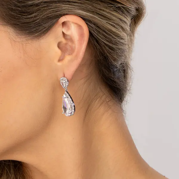 Brinco Banho Ródio Zircônias Brancas Com Gota G