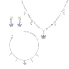 Brinco Prata Leve Infantil Coroa Esmaltada Lilás
