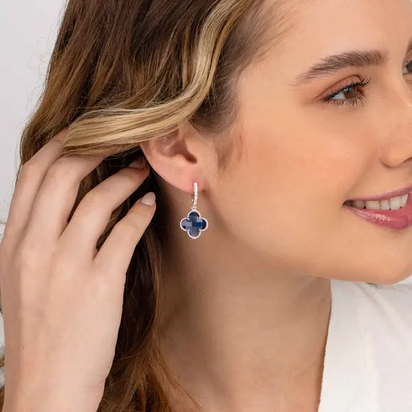 Brinco Prata Leve Trevo Argola Grande Com Zircônias