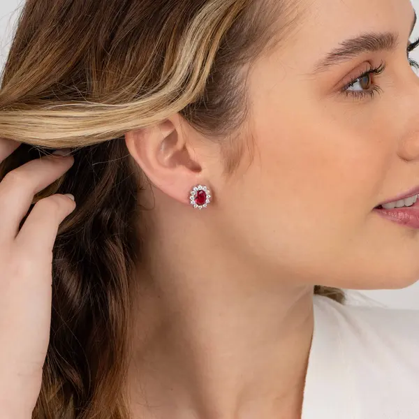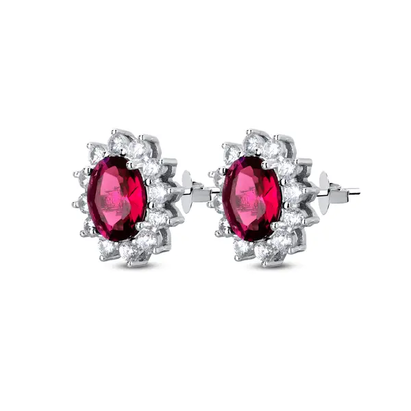 Brinco Prata Rodinado Pedra Oval No Meio Vermelho
