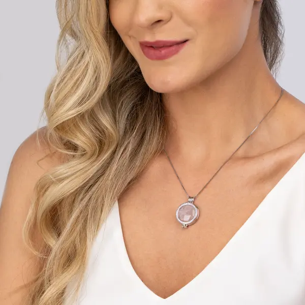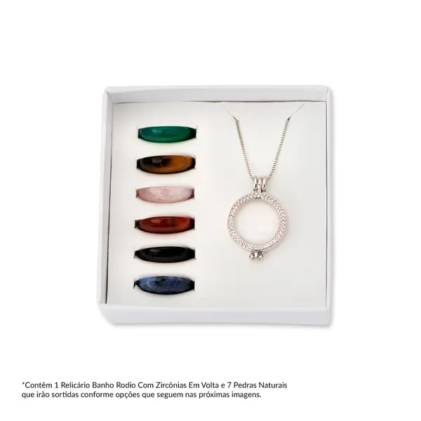 Colar Relicário Banho Rodio Com Zircônias Em Volta 7 Pedras Naturais Sortidas