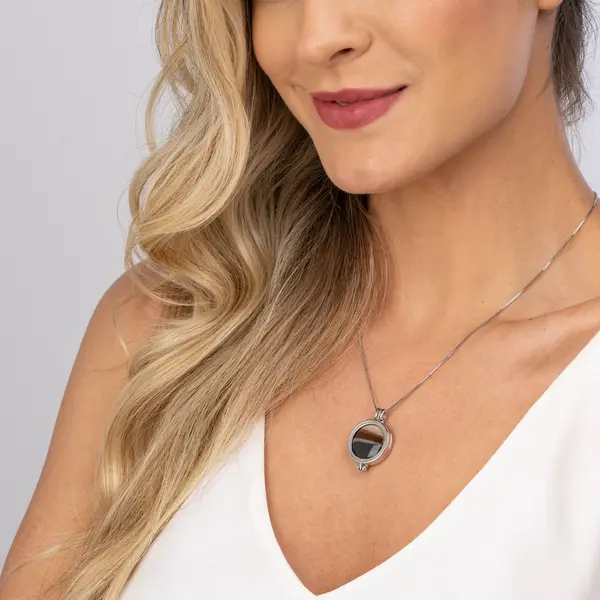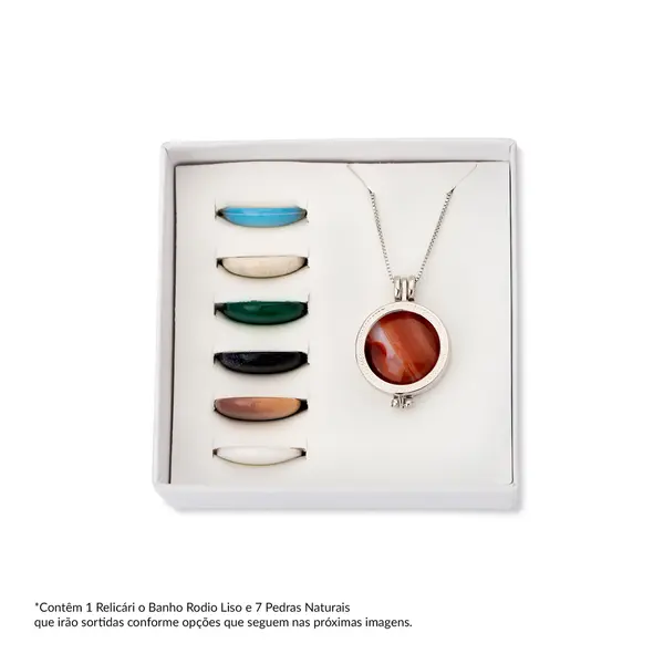 Colar Relicário Banho Rodio Liso 7 Pedras Naturais Sortidas