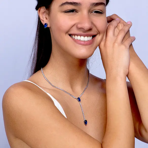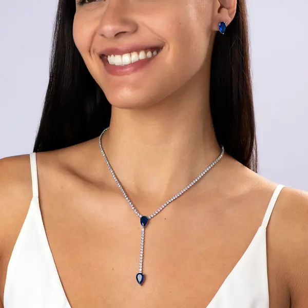 • Conjunto Banho De Rodio Gota Com Zircônias