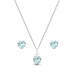 Conjunto Prata Coração Zircônia Pequena Rosa