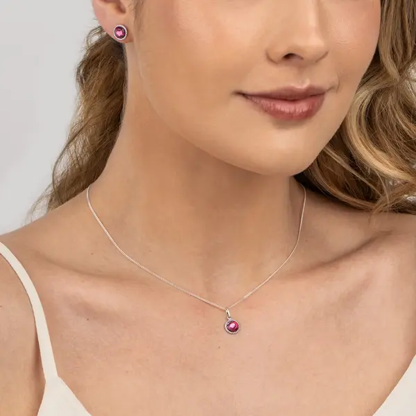 Conjunto Prata Cristal Rosa