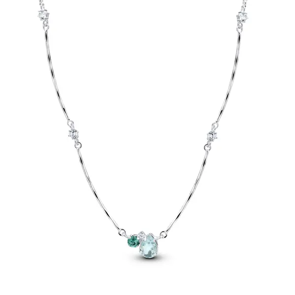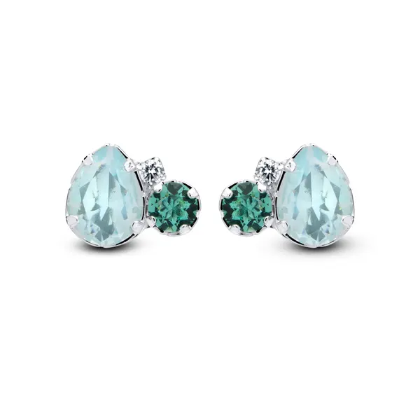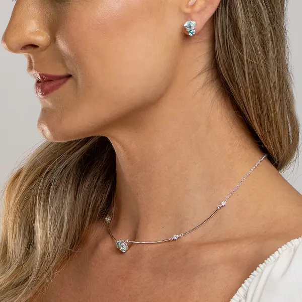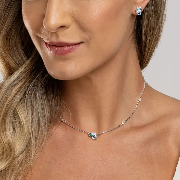 Conjunto Prata Leve Gota e Circulo de Zircônias Azul