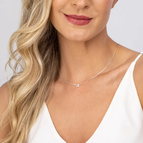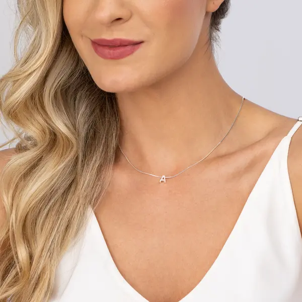 Gargantilha Prata Letra Com Zircônias 40cm Letra A