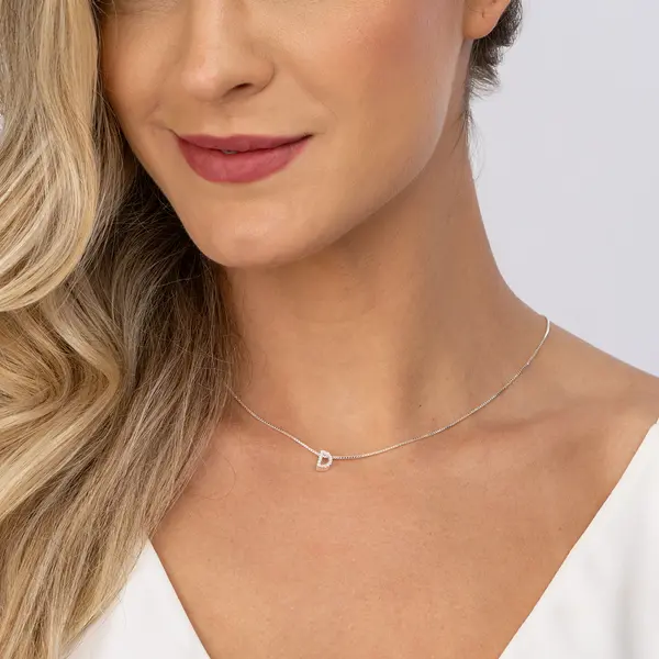 Gargantilha Prata Letra Com Zircônias 40cm Letra D