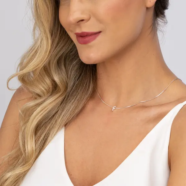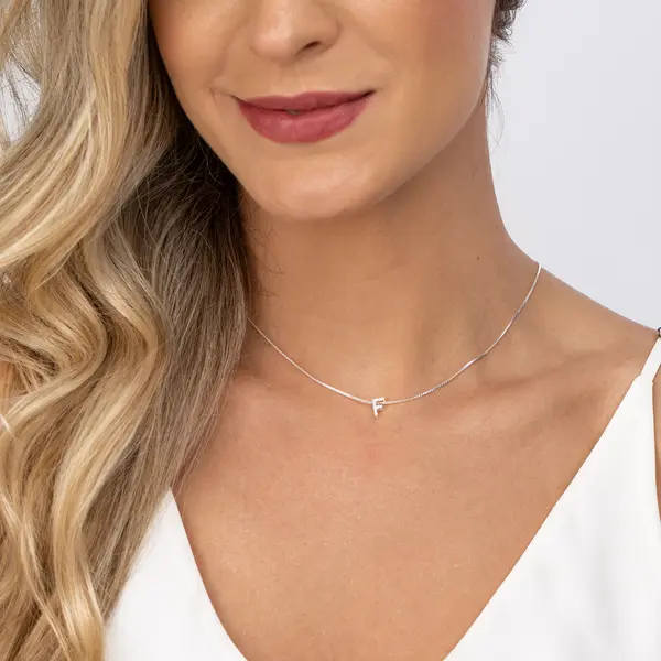 Gargantilha Prata Letra Com Zircônias 40cm Letra F
