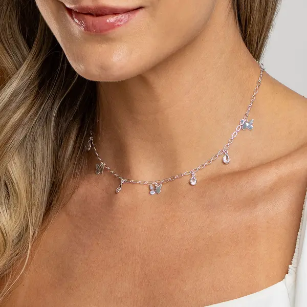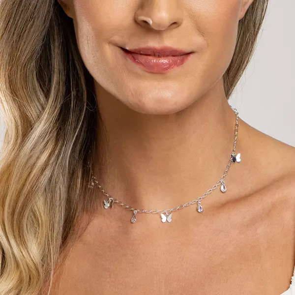 Gargantilha Prata Leve Borboleta Lisa e Zircônia