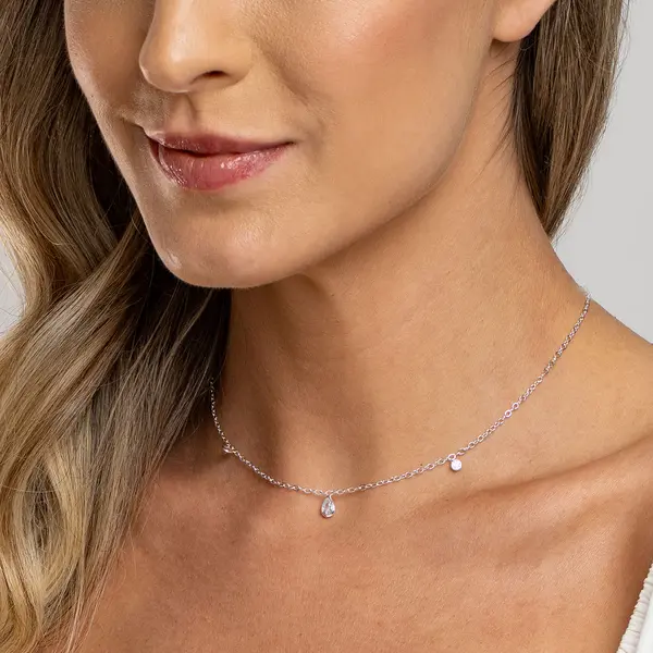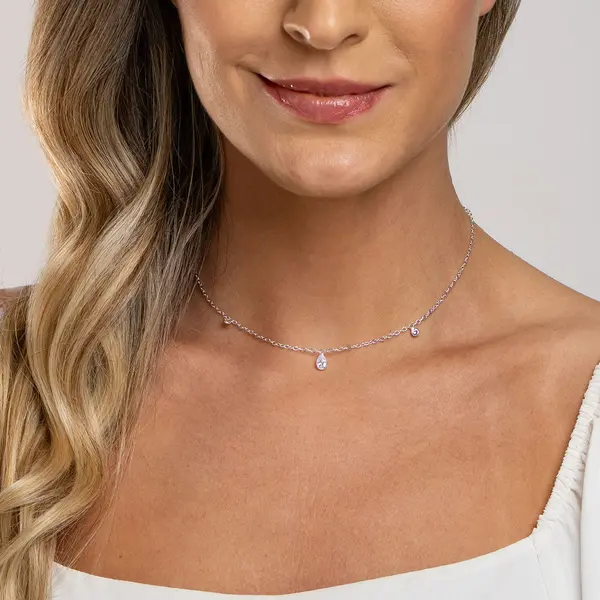 Gargantilha Prata Leve Gota e Circulo em Zircônia