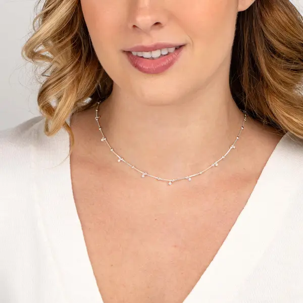 Gargantilha Prata Leve Pontinhos De Zircônias