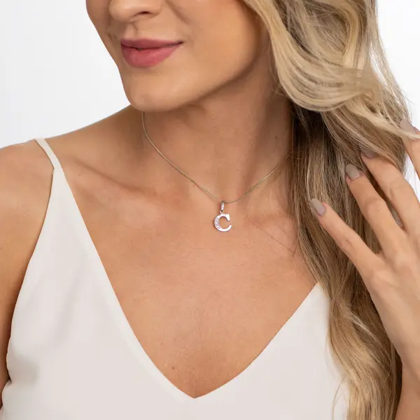 Pingente Prata Letra Zircônia Letra C